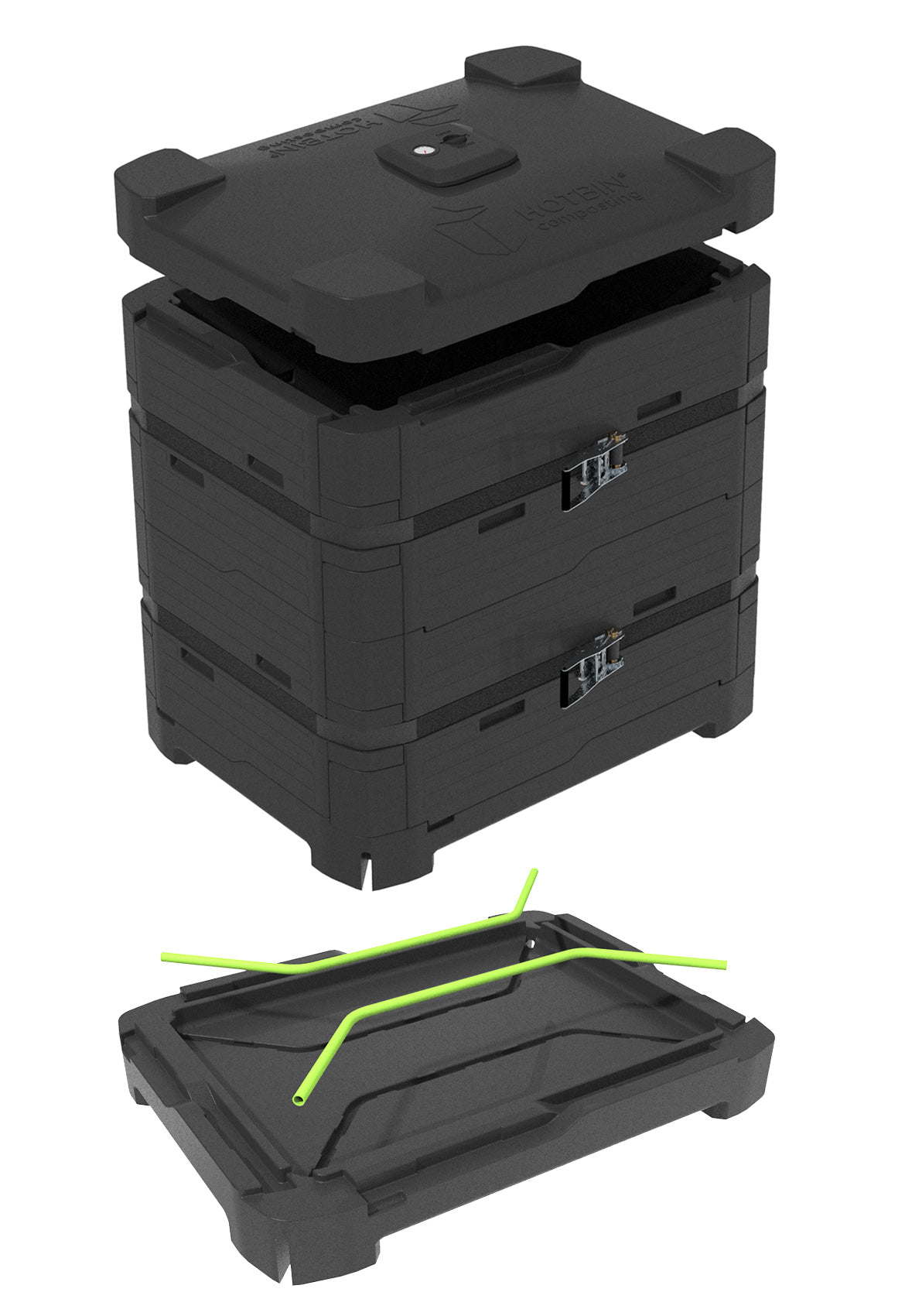 The lid panel incorporates a thermometer to monitor the temperature and aeration valve to allow excess water vapour to escape.
